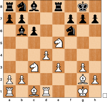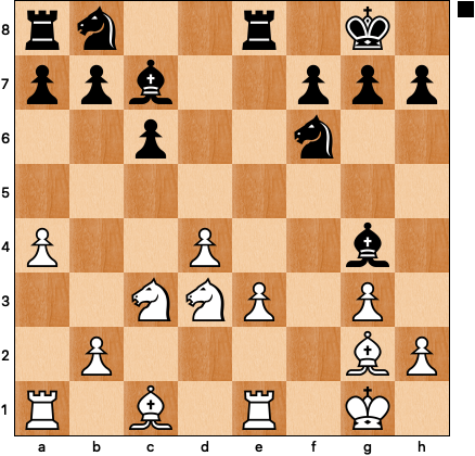 Being surprised is as bad for the chess player as it is for the tightrope walker, and in addition to feeling flustered I was also annoyed at myself for not having considered Ne5-d3 — it’s not like this is an unusual maneuver in these kinds of positions. I played one more random-ish move, and after 16 … Bg4 17 Re1 decided that I should have a think: